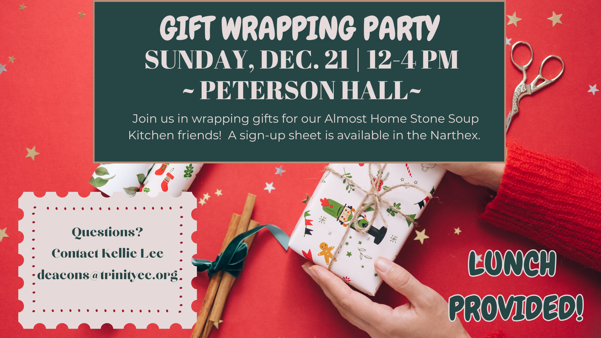 Join us in wrapping gifts for our Almost Home Stone Soup Kitchen friends!